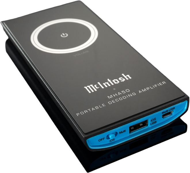 Comparably sized to smartphones, the MHA50 is compact and lightweight for easy portability with a beveled case that fits comfortably in your hand or pocket. Its sleek design features a glass front panel with a touch sensitive volume control knob inspired by the classic knobs found on countless McIntosh amplifiers, preamplifiers? and other products. It's built primarily from durable extruded aluminum which also has some inherent noise shielding properties to help block external interference.