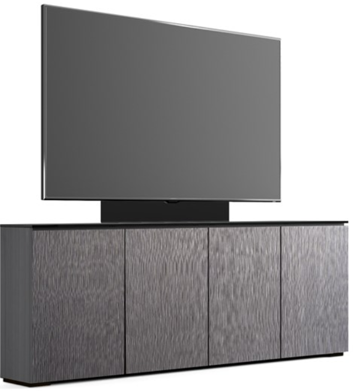 The light look and feel of tall grasses is finely set in a vertical textured pattern. Alpi gray oak with black glass top and black feet work in unison, creating the cabinet’s hi-tech facade.